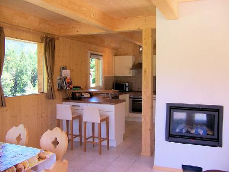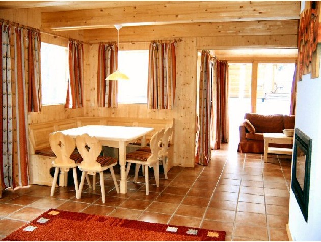 Földszint: Nappali heverővel, bárszék, étkezőasztal, DVD, CD, rádió, tágas, fedett terasz kertibútorokkal. A nappalival egy légtérben teljesen felszerelt konyha. Fürdőszoba, wc, szauna, tároló helység, sícipőszárító, mosógép, szárítógép, vasaló, ruhaakasztó, félig fedett garázs. Emelet: 3 franciaágyas szoba, 1 kétágyas szoba, fürdőszoba, wc.