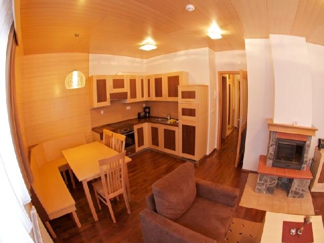 4+1 fős apartman: 61-70 m2, nappali, kihúzható kanapéval, kandallóval, konyha étkezővel, hálószoba 2 ággyal és 1 kihúzhatóággyal, fürdő,balkon.